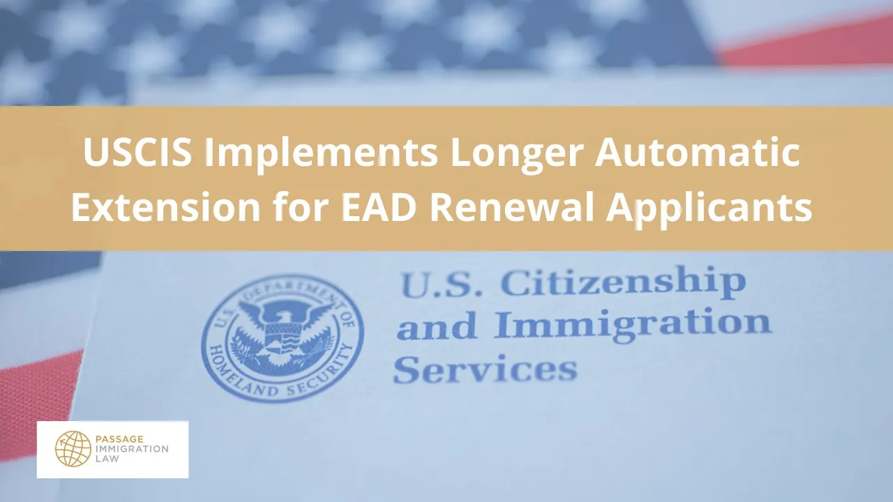 Earlier this month, the United States Citizenship and Immigration Services (USCIS) announced that certain applicants filing for a renewal of their Employment Authorization Documents (EADs) will now receive an automatic 540-day extension of their employment authorization while their renewal application is pending. You can read more about this ruling here.